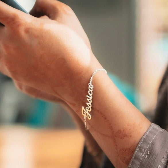 Our customized name bracelet is a beautiful gift for yourself or someone special. It’s perfect for pairing with a variety of wardrobe items, and it adds a personal touch to any outfit. This beautiful name bracelet handmade with love by our highly experienced Designers. However you style it, It will certainly make a great impression.